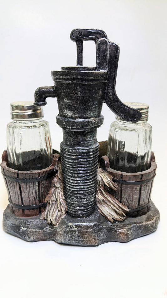 Farm Rooster Guarding Water Pump Salt and Pepper Shaker